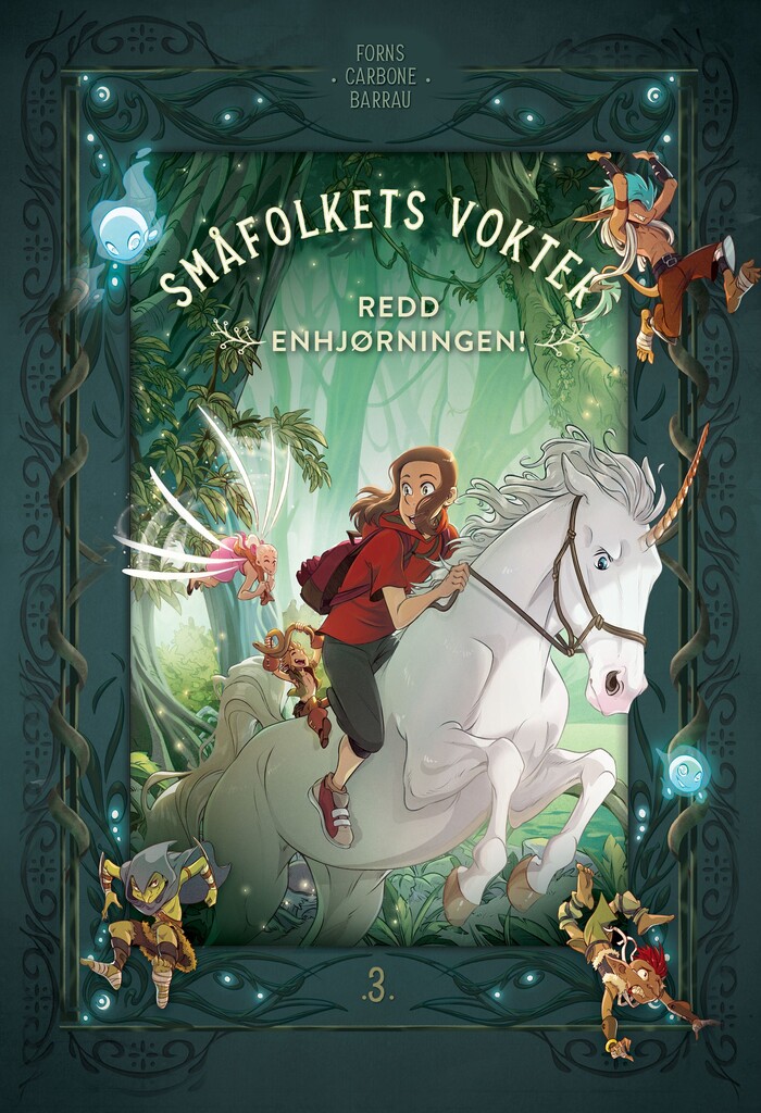 I Redd enhjørningen! må Elina nok en gang hjelpe det magiske folket som lever i skjul for menneskene. Goblinene har kidnappet en enhjørning! Det kan ikke Elina, småfolkets vokter, tillate. Hun legger ut på et nytt, fartsfylt eventyr for å befri det sjeldne fabeldyret. Men selv om hun får god hjelp av sine to venner, gnomen Llyam og feen Nelvyna, skal oppdraget vise seg å være vanskeligere enn hun hadde trodd ... Kan Elina og vennene hennes klare å redde enhjørningen? Hver bok i Småfolkets vokter-serien er et avsluttende kapittel i en lengre serie. Tegneserie for småskole-/mellomtrinnet.